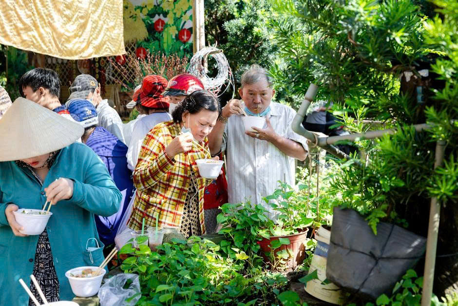 Không chỉ dừng lại ở những món quà vật chất, chương trình còn mang đến 500 suất ăn miễn phí với mì Quảng và cacao sữa – một bữa trưa ấm lòng giữa cái nắng tháng 8. Cảnh người dân và các em học sinh cùng ngồi quây quần, trò chuyện, thưởng thức bữa ăn ngon lành, đã tạo nên khoảnh khắc bình dị nhưng đong đầy tình cảm.