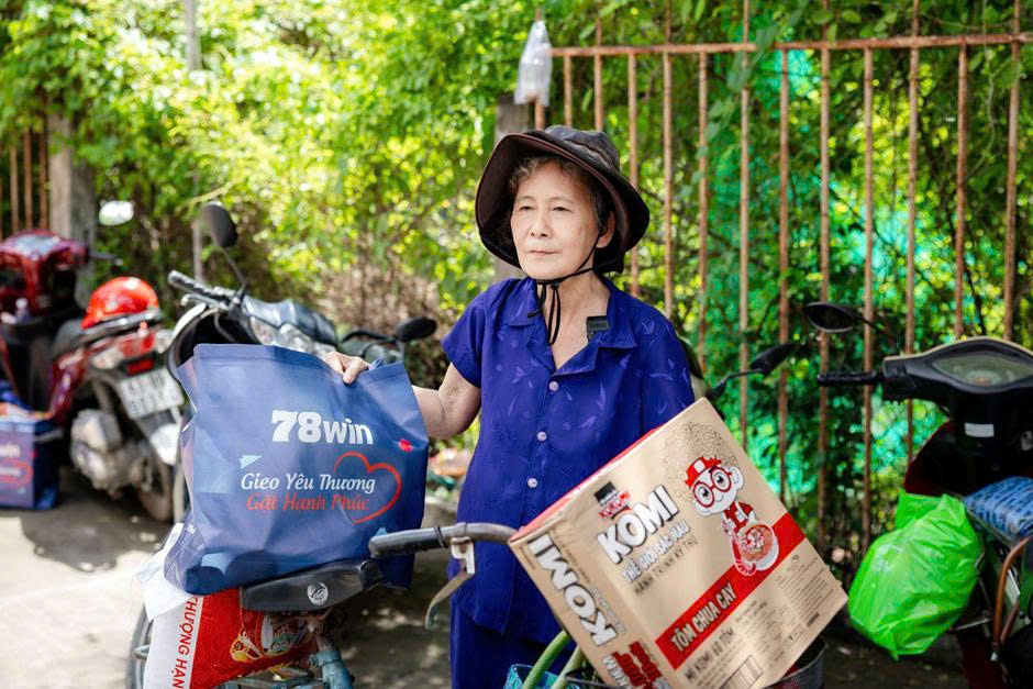 Một cụ bà tóc bạc lưng còng lặng lẽ cầm túi quà, đôi tay run run nhưng ánh mắt lại lấp lánh niềm vui. “Tui tưởng đời già chẳng ai nhớ... vậy mà cũng có người mang quà tới tận tay. Quý lắm.” – bà cười móm mém, lời nói như vỡ ra từ đáy lòng.