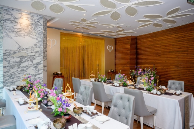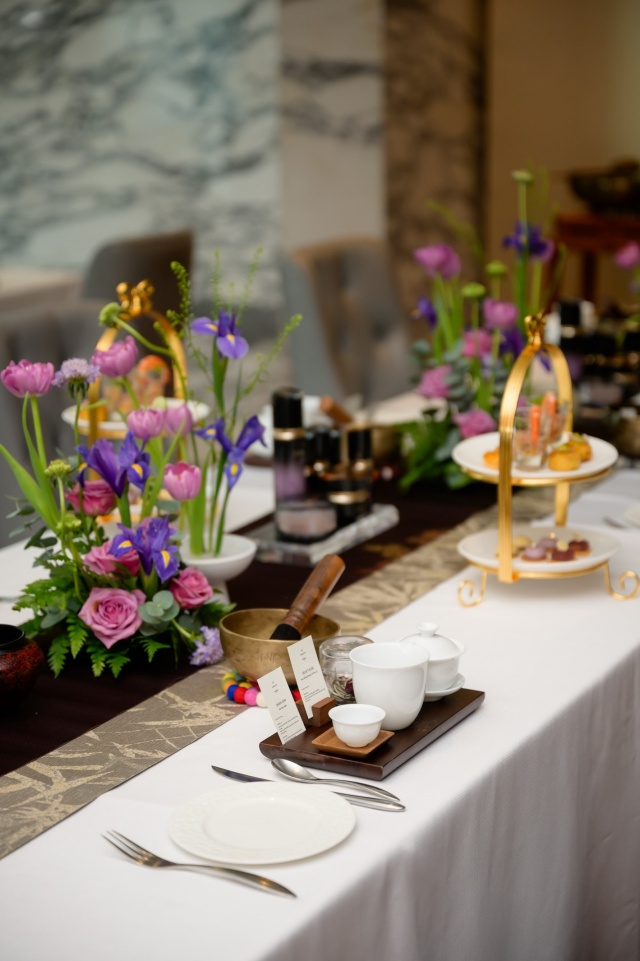 Ngay khi sự kiện bắt đầu, một nghi thức tĩnh tâm nhẹ nhàng với liệu pháp chuông xoay, giúp khách mời điều chỉnh lại tâm trí và nhịp thở, để sẵn sàng bước vào những hành trình trải nghiệm sắp tới. Thiền chuông xoay, có công dụng chính là hỗ trợ thư giãn, cân bằng năng lượng và chữa lành tinh thần – thể chất. Hoa hồng, loài hoa được biết đến với tần số rung động cao nhất trong các loài hoa. Bên cạnh đó, tần số rung động của chuông tác động đến cơ thể, giúp loại bỏ năng lượng tiêu cực và khôi phục sự hài hòa. Cùng với nghi thức thiền chuông, khách mời được mời trải nghiệm một nghi thức pha trà đạo, với những búp trà non thượng hạng được thu hoạch và chọn lựa một cách công phu. Thông qua đó, mở ra ý nghĩa của việc thưởng trà, được cảm nhận và hoà cùng sự điềm tĩnh an yên trong văn hoá trà đạo. Dưới hương thơm thoảng của hoa hồng, âm rung của chuông xoay và hương vị thanh nhẹ của trà, mọi thứ dường như kết hợp hoàn hảo tự nhiên mà không cần gượng ép.