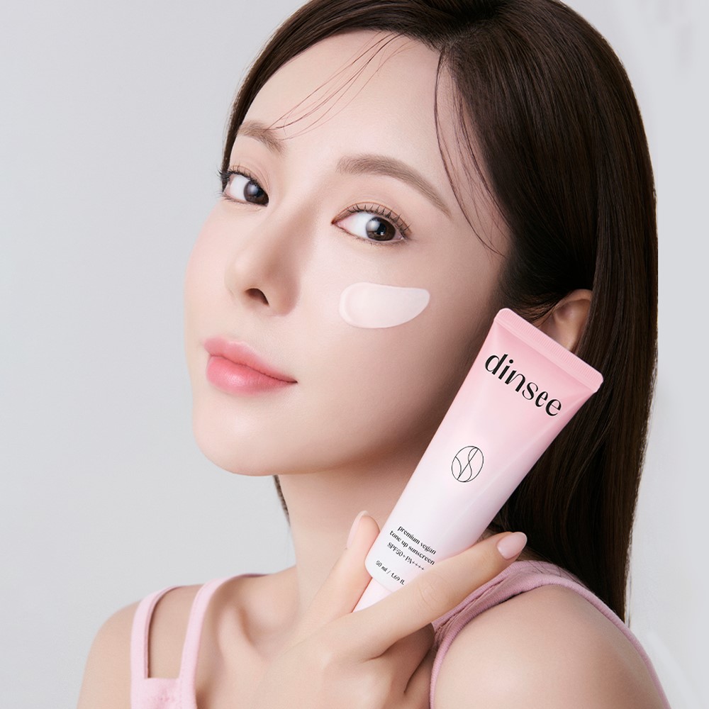 Lớp lá chắn trắng hồng, mọng nước : Hệ thống 4 màng lọc phổ rộng gồm Tinosorb S, Uvinul A Plus, Uvinul T 150 và Zinc Oxide giúp hấp thụ và phản xạ tia UV ổn định, hạn chế hiện tượng xỉn màu hay xuống tông cuối ngày. Không chỉ dừng lại ở khả năng bảo vệ, sắc hồng được xử lý tinh tế tạo hiệu ứng da trắng hồng trong trẻo, căng bóng nhưng không “giả trân”. Lớp finish ẩm mịn đủ để thay thế nền makeup dày, mang lại vẻ rạng rỡ tự nhiên suốt nhiều giờ. Đó chính là lý do phiên bản này trở thành lựa chọn lý tưởng cho những ai yêu thích hiệu ứng Glass Skin với Dinsee Premium Vegan Tone Up Sunscreen SPF50+ PA++++ (Hồng).